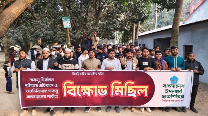 স্টাফ রিপোর্টারঃ শাহজালাল বিজ্ঞান ও প্রযুক্তি বিশ্ববিদ্যালয় ছাত্র সংসদ নির্বাচন স্থগিতের প্রতিবাদে গোমস্তাপুরের রহনপুরে বাংলাদেশ ইসলামী ছাত্রশিবিরের বিক্ষোভ মিছিল অনুষ্ঠিত হয়েছে। বৃহস্পতিবার (২২ জানুয়ারি ) বাংলাদেশ ইসলামী ছাত্রশিবির চাঁপাইনবাবগঞ্জ জেলা read more
